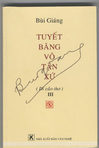 Tập thơ di cảo thứ 3 của Nhà thơ Bùi Giáng với tựa “Tuyết băng vô tận xứ” là một thi phẩm gòm toàn những bài vịnh và hoạ của Bùi Giáng ra mắt bạn đọc, sáng tác từ sau cuộc gặp gỡ giữa thi sĩ với bà Thân Thị Ngọc Quế năm 1994. Trong tập thơ này, Bùi Giáng như gặp một nguồn tâm cảm, tâm giao bất ngờ và khởi tâm hoạ vịnh tất tả các tập thơ đó. Phần in lần này gồm hơn 150 bài họa vịnh theo tập Tuyết mùa viễn xứ của bà Ngọc Quế, được xem như một "hòa âm" thăm thẳm dịu dàng, thiết tha và ngẫu nhĩ.