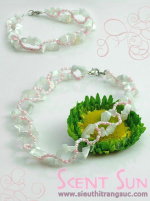 Bộ trang sức bao gồm vòng cổ và vòng tay được làm từ cườm và đá tự nhiên
