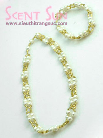 Bộ trang sức bao gồm vòng cổ và vòng tay được làm từ cườm và ngọc trai nuôi
