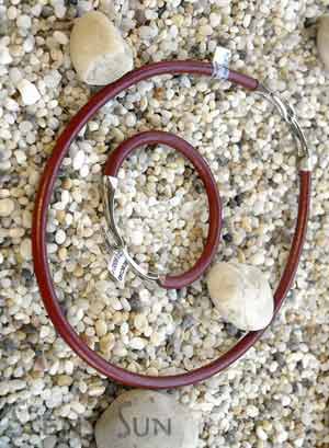 Bộ trang sức gồm vòng cổ và vòng tay làm từ da và hợp kim cao cấp