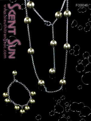 Bộ trang sức bao gồm vòng cổ dài và vòng tay được làm từ hạt cườm trai