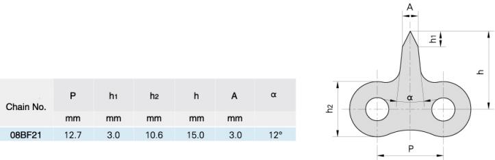 - Chiều dày má xích T: 0.80 – 8.00 mm